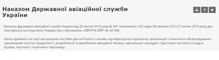 26 июля Госавиаслужба внезапно отозвала разрешение на полеты у авиакомпании, без указания причины, но, по слухам, что из-за перевозок контрабандного оружия.