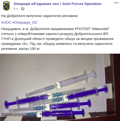 В Доброполье Донецкой области во время обыска было обнаружено и изъято 150 кг наркотических веществ. Об этом сообщает пресс-центр ООС в Facebook.
