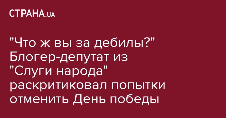 "Что ж вы за дебилы?" Блогер-депутат из "Слуги народа" раскритиковал попытки отменить День победы