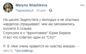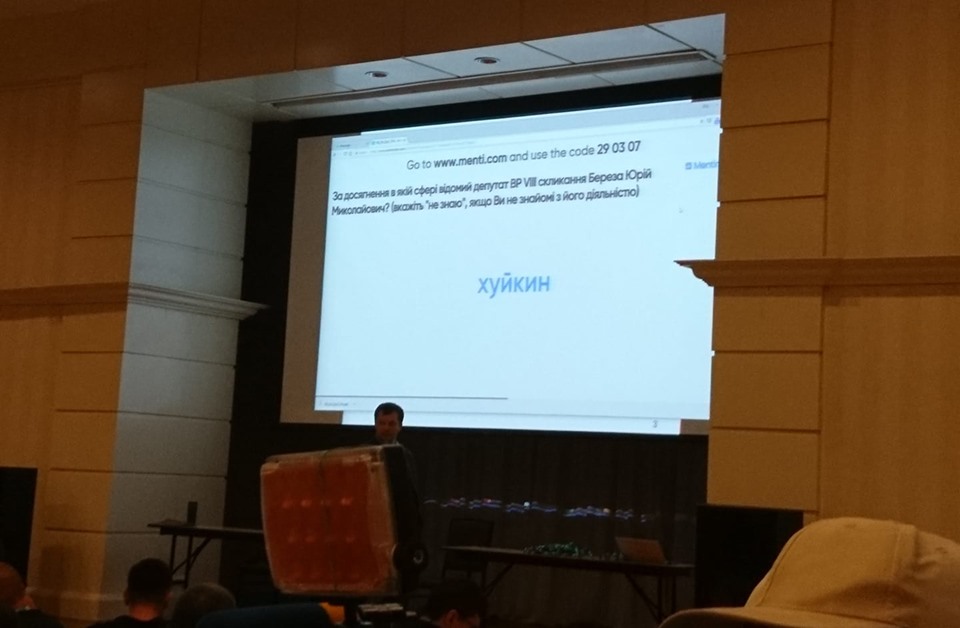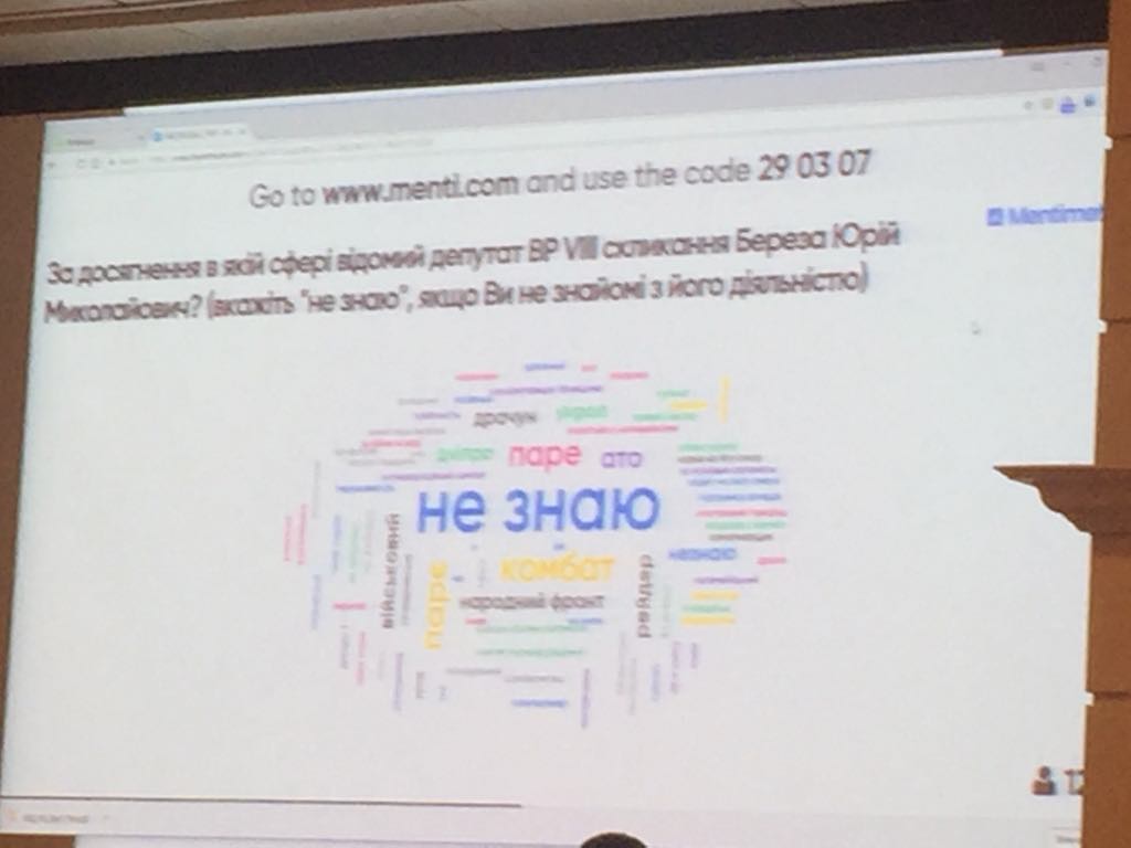 Затем перешли к вопросам. Они касались осведомленности студентов о деятельности Верховной Рады. Например: "За достижения в какой сфере известен депутат 8-го созыва Береза Юрий Николаевич?" (Береза – нардеп-комбат из "Народного фронта").