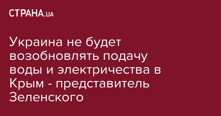 Украина не будет возобновлять подачу воды и электричества в Крым - представитель Зеленского