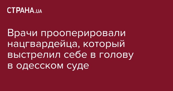 Медики провели операцию военнослужащему Национальной гвардии Украины, который сегодня был найден в Киевском районном суде Одессы с огнестрельным ранением головы, передает УНИАН.