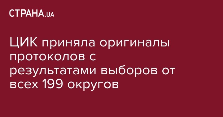 Во вторник, 30 июля, Центральная избирательная комиссия приняла последние оригинальные протоколы с результатами голосования на парламентских выборах. Об этом передает 112 Украина.