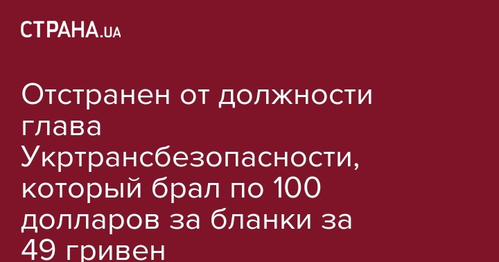 Отстранен от должности глава Укртрансбезопасности, который брал по 100 долларов за бланки за 49 гривен