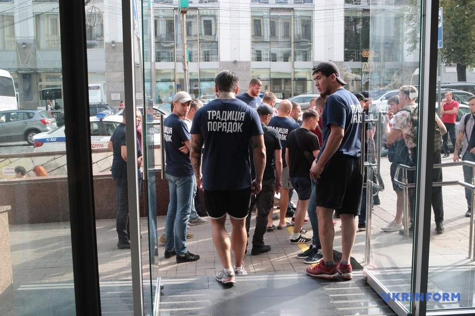 В агентстве Укринформ закрыли свой первый пресс-зал, после того, как на него напали молодчики в футболках "Традиция и порядок", повредив оборудование.