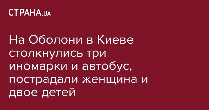 В Оболонском районе Киева на улице Днепроводской столкнулись автомобили Hyundai Accent, Hyundai Elantra, Volkswagen Jetta и автобус, маленькие дети и женщина попали в больницу, сообщает Информатор.