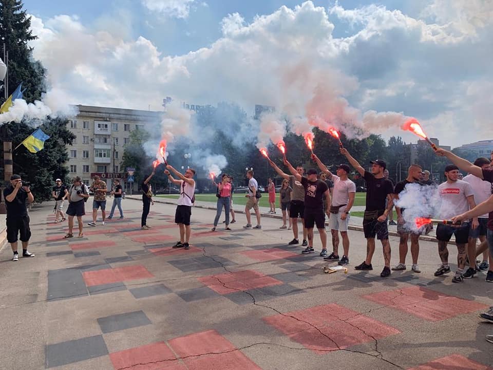 Участники акций протеста взрывали петарды, поджигали файеры и дымовые шашки. Также они установили на здании Нацполиции табличку с надписью "ул. Катерины Гандзюк, 4". По словам активистов, замначальника ГУНП пообещал ее не снимать.