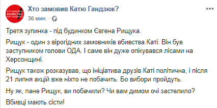 Скриншот, фото: Facebook/ Хто замовив Катю Гандзюк?