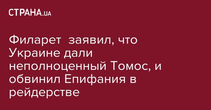 Филарет заявил, что Украине дали неполноценный Томос, и обвинил Епифания в рейдерстве