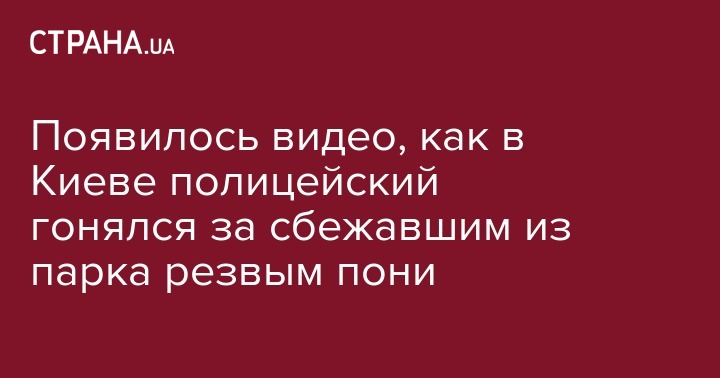 Появилось видео, как в Киеве полицейский гонялся за сбежавшим из парка резвым пони