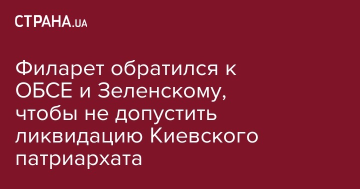 Филарет обратился к главе Украины Владимиру Зеленскому и Организации по безопасности и сотрудничеству в Европе из-за ликвидации Украинской православной церкви Киевского патриархата, передает Радио Свобода