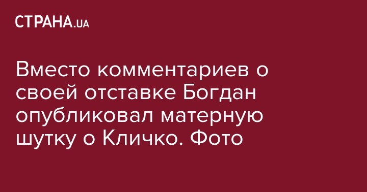 Глава Офиса президента Андрей Богдан, информация об отставке которого прокатилась по украинским изданиям сегодня, вместо того, чтобы прокомментировать слухи выложил матерную шутку про мэра Киева Виталия Кличко.