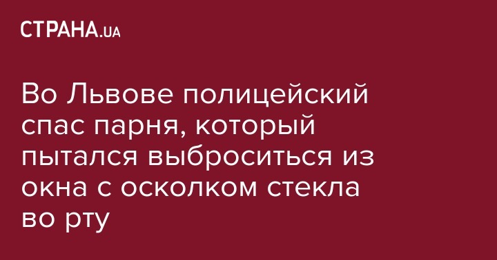 Во Львове полицейский спас парня, который пытался выброситься из окна с осколком стекла во рту