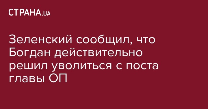 Зеленский сообщил, что Богдан действительно решил уволиться с поста главы ОП