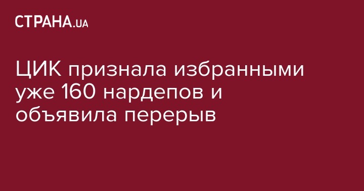 "Таким образом, по состоянию на 2 августа Центральная избирательная комиссия признала избранными 160 народных депутатов Украины", - сказано в сообщении.