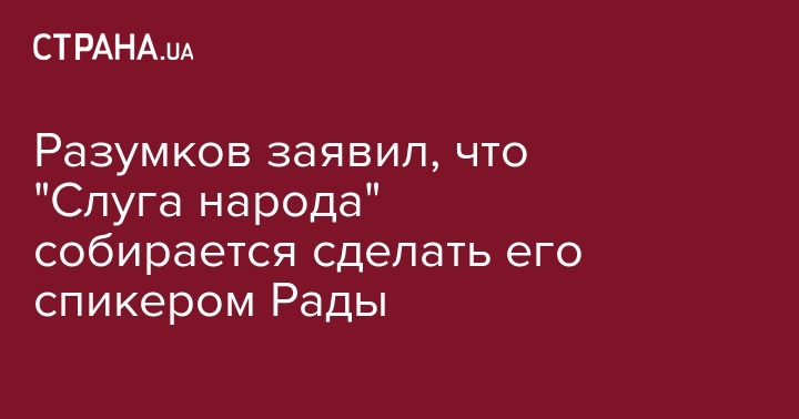 Глава партии "Слуга народа", которая выиграла парламентские выборы в Украине, Дмитрий Разумков заявил, что его кандидатуру решили выдвинуть на должность спикера Рады.