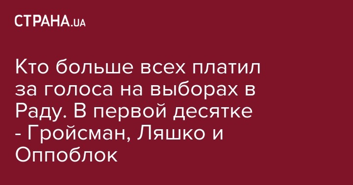 Кто больше всех платил за голоса на выборах в Раду. В первой десятке - Гройсман, Ляшко и Оппоблок