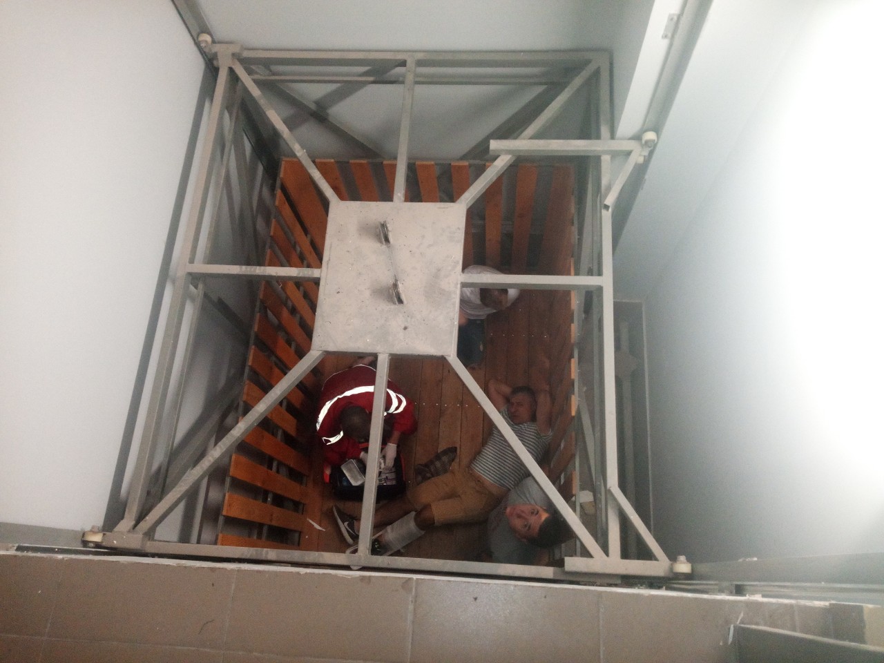 Утром 4 августа  в Службу спасения Кировоградской области поступило сообщение об обрыве троса и падении грузового лифта в пгт Гайворон. Падение произошло по ул. Василия Стуса. Лифт двумя людьми рухнул с первого этажа в подвальное помещение магазина.
