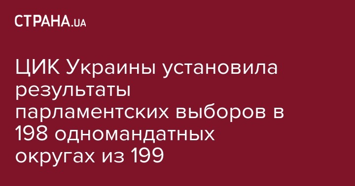 В Центральной избирательной комиссии (ЦИК) установили результаты досрочных выборов в Раду в 198 одномандатных избирательных округах, передает УНИАН.