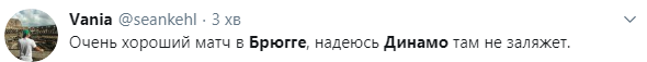 Евгений сообщил, что динамовцам всего нужно следить за полузащитником Брюгге Хансом Ванакеном, который в предыдущих сезонах был на ведущих ролях в чемпионате Бельгии. Также он сказал, что дружит с игроком Брюгге экс-"горняком" Эдуардом Соболем, даже в теннис с ним играл, но болеть все равно будет за Динамо.