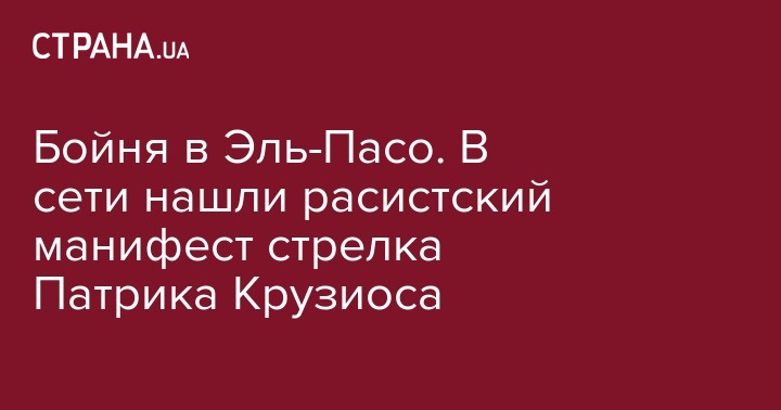Федеральные власти США и полиция расследуют стрельбу в супермаркете Walmart в Эль-Пасо (штат Техас - Прим.Ред.), в результате которой погибли 22 человека, как внутренний терроризм. Детективам уже удалось обнаружить в сети расистский манифест стрелка 21-летнего Патрика Крузиоса, в котором тот оправдывал кровавую бойню необходимостью борьбы с мигрантами.