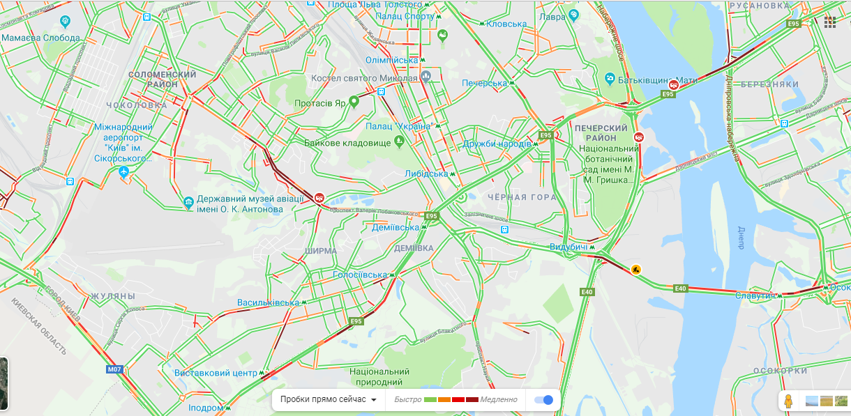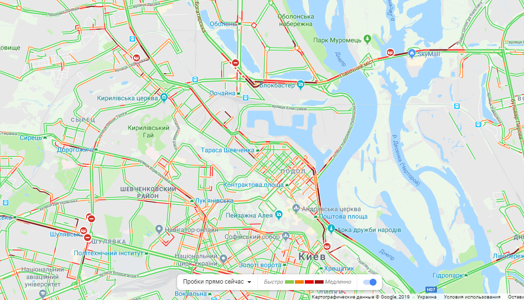 Что касается левого берега, тут лучше воздержаться от поездок на проспектах Соборности и Николая Бажана, Броварском проспекте, проспектах Юрия Гагарина и Генерала Ватутина, на Харьковском и Дарницком шоссе, а также на Днепровской и Русановской набережной.