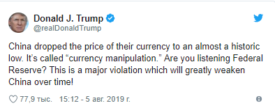 Что касается юаня, то после его обвала Трамп обвинил Пекин в манипуляциях и заявил, что это нарушение со временем ослабит Китай.
