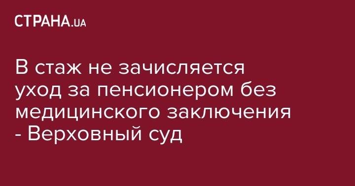 Верховный Суд указал, что в стаж работы засчитываются периоды присмотра не за любым пенсионером, а лишь за требующим такого присмотра (пункт "ж" ст. 3 и пункт "є" ст. 56 Закона "О пенсионном обеспечении"). Потребность в таком присмотре должна быть подтверждена соответствующим выводом медицинского заведения. Ведь именно состояние здоровья является тем критерием, по которому определенных лиц относят к категории, время ухода за которыми засчитывается в стаж работы.