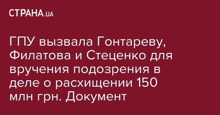 В данный момент на сайте ГПУ опубликованы повестки о вызове на допрос на 12 августа Гонтаревой, Филатова и Стеценко по "делу Курченко".