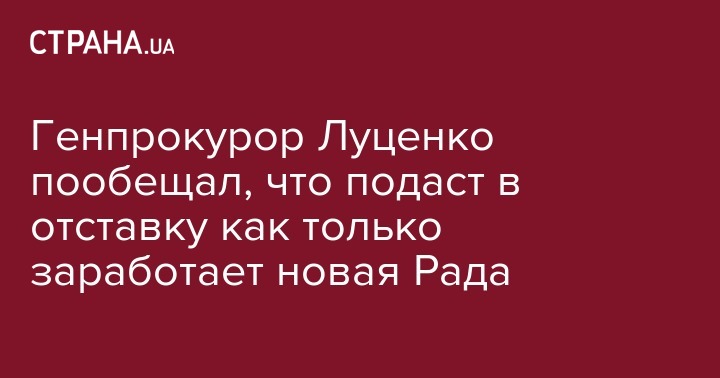 "Как только новый парламент соберется ... я подам заявление об отставке", - заявил Луценко. По словам Луценко, он говорил президенту Украины Владимиру Зеленскому, что как только будет избран новый парламент, он напишет заявление об отставке на имя спикера Верховной Рады. "Я готов к этому. Жду имя спикера. Как только парламент соберётся, сформирует руководящие органы парламента, я внесу заявление об отставке по собственному желанию", - отметил Луценко.