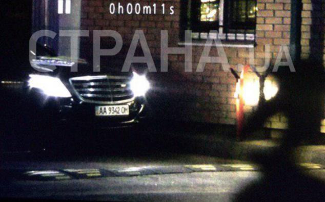 По номеру одной из машин видно, что это именно автомобиль экс-президента. "Мерседес" с таким же номером привозил Порошенко на допрос в здание ГБР.