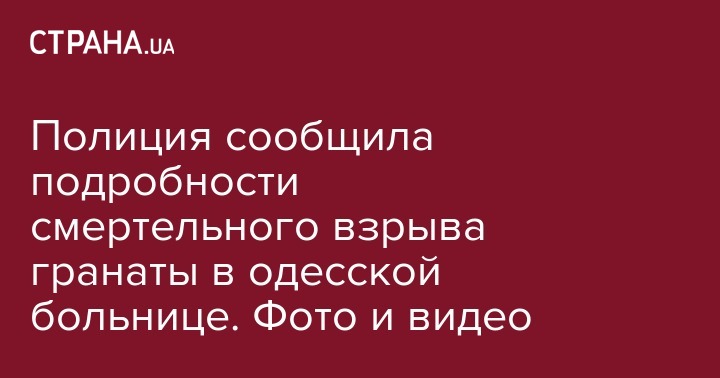 "Полицейские расследуют обстоятельства взрыва в Раздельнянской больнице. Вследствие взрыва гранаты погибли два человека. Происшествие квалифицировано по ст. 115 (умышленное убийство) Уголовного кодекса Украины", - говорится в сообщении.