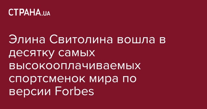 Первая ракетка Украины Элина Свитолина вошла в топ-10 самых высокооплачиваемых спортсменок мира с 1 июня 2018 года по 1 июня 2019-го. Соответствующий рейтинг опубликовал Forbes.