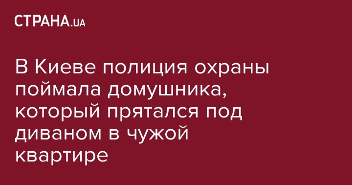 Полиция охраны в Киеве нашла под диваном мужчину, который проник в чужую квартиру. Об этом сообщает пресс-служба полиции Киева.