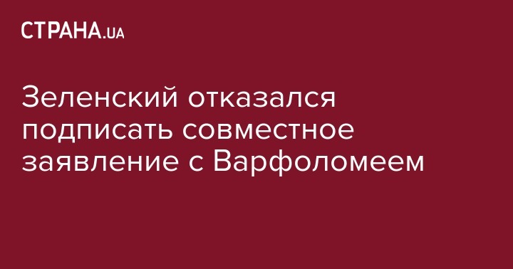 В офисе президента отказались ответить на вопрос издания, почему не подписали совместное заявление. Впоследствии офис президента обнародовал короткий релиз. Согласно ему, Варфоломей поддержал суверенитет Украины, а Зеленский поблагодарил его за поддержку.