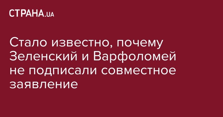 Стало известно, почему Зеленский и Варфоломей не подписали совместное заявление