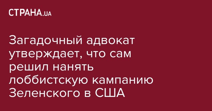 Загадочный адвокат утверждает, что сам решил нанять лоббистскую кампанию Зеленского в США