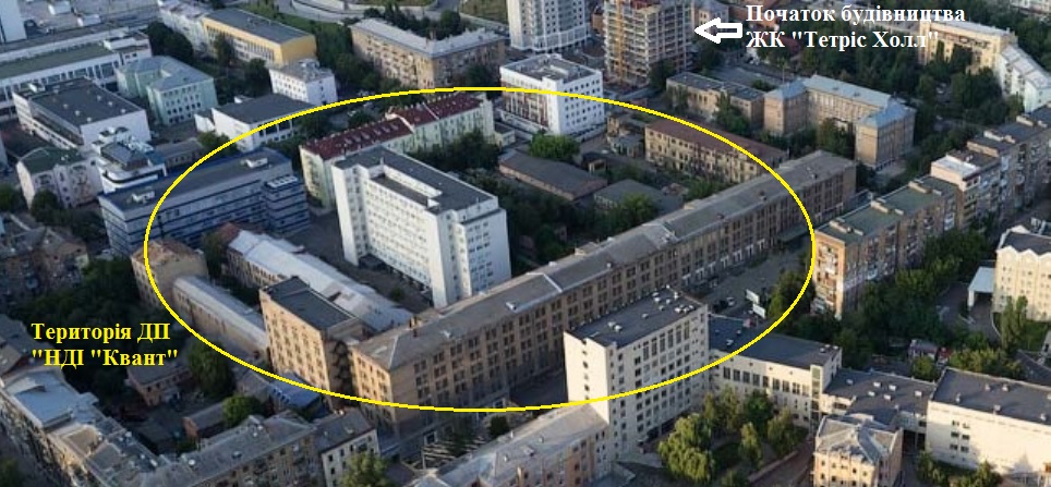 Следователи отмечают, что строительство ЖК "Тетрис Холл" по ул. Деловая, 5 в Киеве осуществляется на прилегающей территории Госпредприятия "Научно-исследовательский институт "Квант", который входит в список предприятий оборонно-промышленного комплекса.