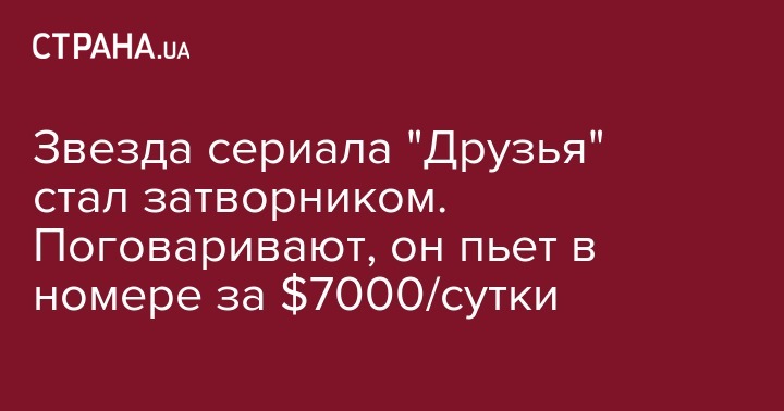 Актер Мэттью Перри, который прославился после роли Чендлера Бинга в сериале Друзья,теперь претворился в затворника. Он практически не покидает свое жилище - расположенный в отеле пентхаус, который стоит семь тысяч долларов в сутки, передает New Idea