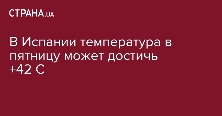 В Испании метеорологические службы предупредили, что температура воздуха в пятницу, 9 августа, может подняться до +42 С. Об этом передает Интерфакс-Украина со ссылкой на местные СМИ.
