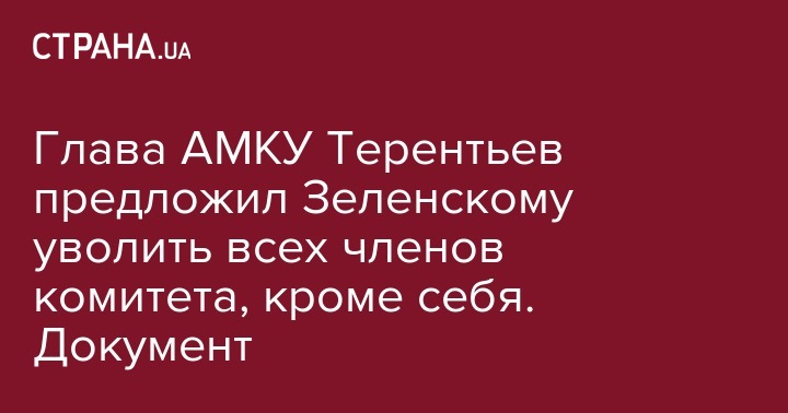 Глава АМКУ Терентьев предложил Зеленскому уволить всех членов комитета, кроме себя. Документ