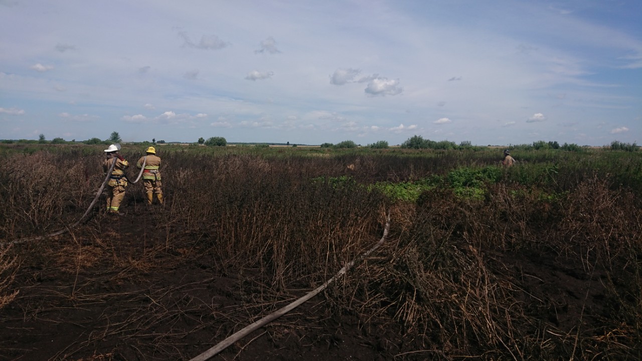 Прибыв на место пожара, спасатели провели разведку и установили, что залежи торфа горя отдельными ячейками в местах, куда сложно добраться.