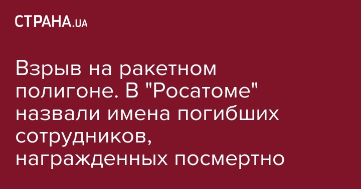 Названы имена сотрудников "Росатома", которые погибли при взрыве нового изделия на ракетном полигоне в Архангельской области России. Об этом передает ТАСС.