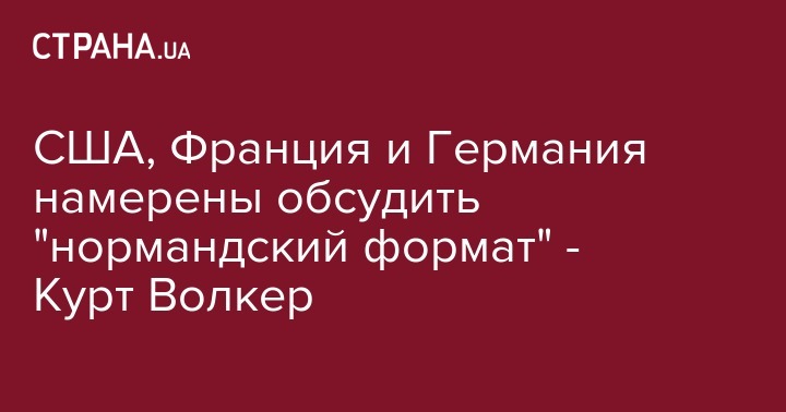 Представители трех стран: США, Франции и Германии намерены провести консультации относительно "нормандского формата". Такое заявление сделал Специальный представитель Госдепартамента США по вопросам Украины Курт Волкер, передает "Голос Америки".