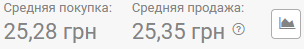 В обменках по состоянию на 08:30 средняя покупка была 25,35 грн, средняя продажа - 25,45 грн.