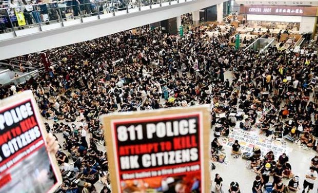 В понедельник, 12 августа, международный аэропорт Гонконга отменил все рейсы из-за того, что в главном терминале скопилось несколько тысяч протестующих. Об этом сообщает АР со ссылкой на пресс-службу воздушной гавани.