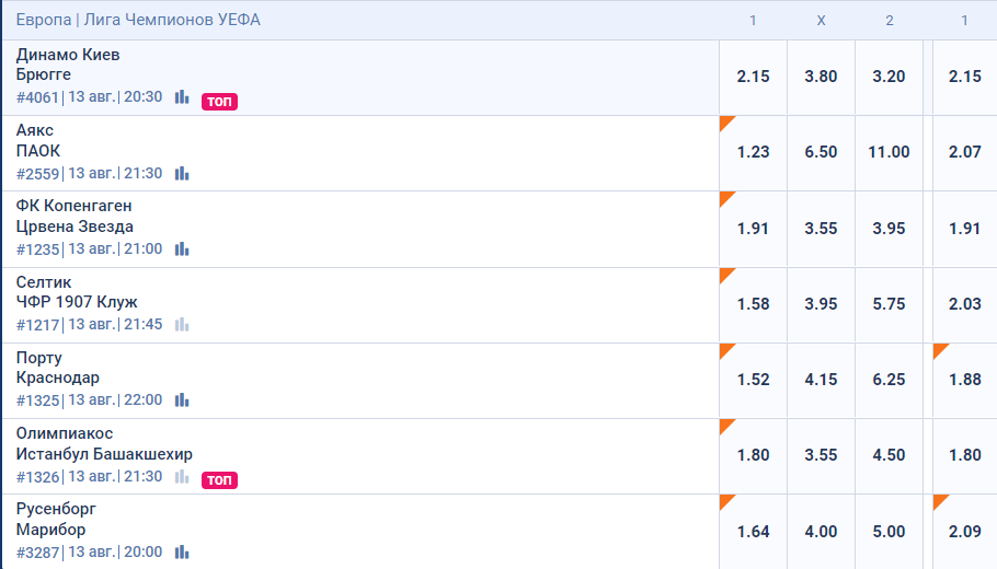 Ставки Пари Матч на матчи 3 раунда Лиги чемпионов и Суперкубок УЕФА