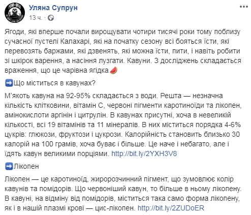 Фото: facebook.com/ulanasuprun