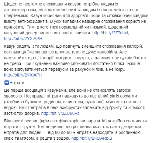 "Люди с гиперкалиемией, избытком калия в крови, должны не переедать арбузов. В арбузе содержится калий, который здоровому человеку будет на пользу, а тем, кто не может регулировать уровень калия в крови, повредит и вызовет аритмию или спазмы мышц", - рассказала Супрун.