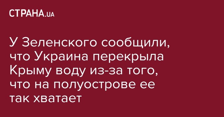 У Зеленского сообщили, что Украина перекрыла Крыму воду из-за того, что на полуострове ее так хватает